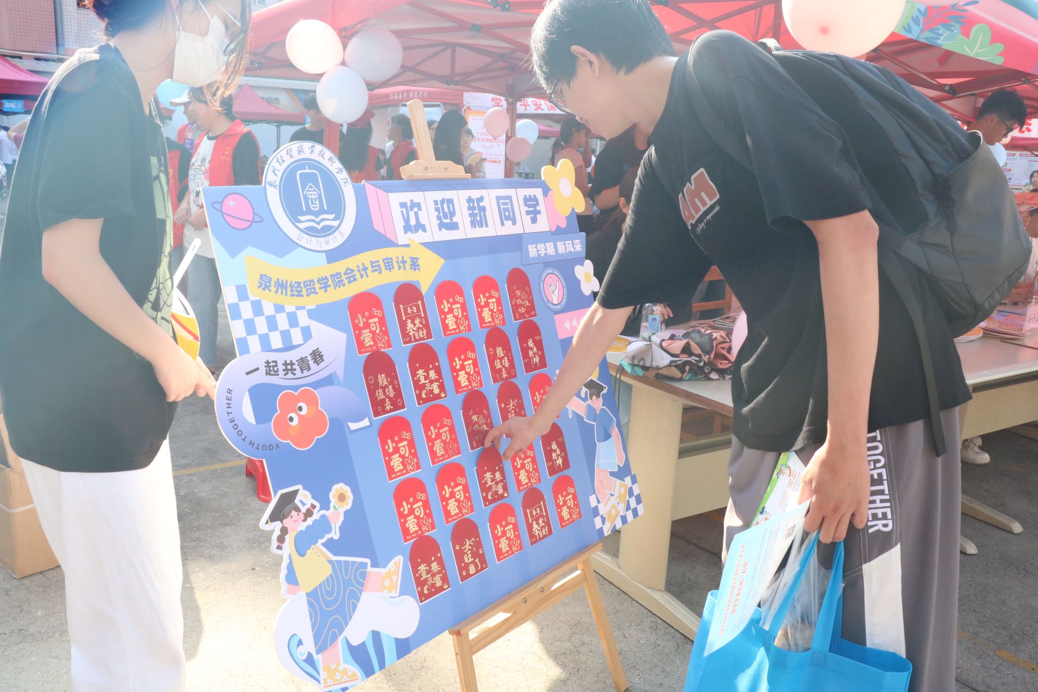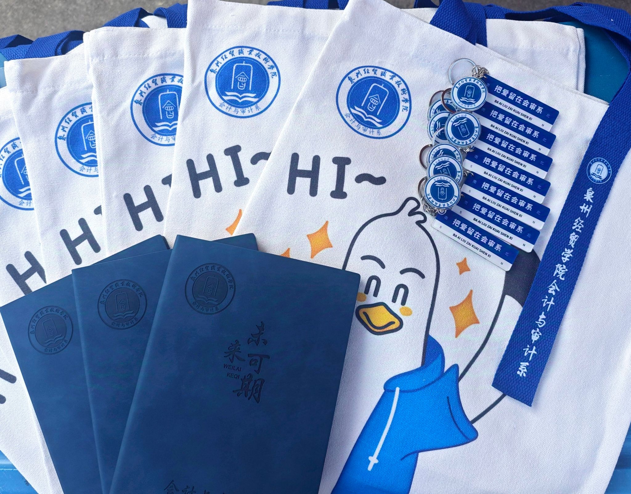 此外,我系还在报到现场开展了迎新抽奖活动,为新生定制了精美的帆布包、笔记本、钥匙扣等文创产品,让新生感受到会审系大家庭的热情温暖与贴心。