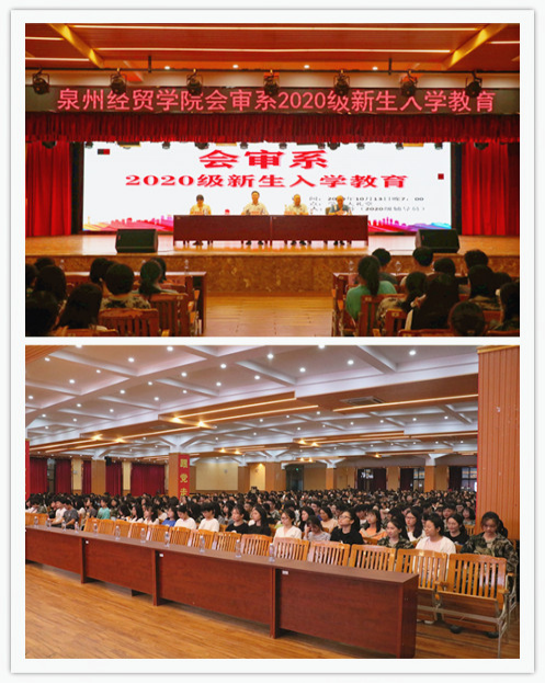 为帮助2020级新同学更好地适应大学校园新环境、科学规划大学生活、树立新的人生目标,2020年10月13日晚上,会审系在学院大礼堂举行2020级新生入学教育大会。系主任、党总支书记沈永希,会审系副主任、党总支副书记汪建家,系副主任、第二党支部书记李英伟以及全体辅导员、班主任出席会议,会议由辅导员苏雪芬老师主持。
