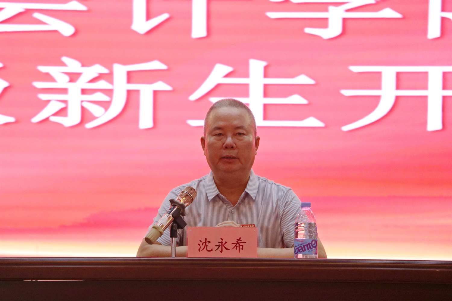 学校党委委员、副校长沈永希致辞,代表学校向会计学院全体新生的到来表示欢迎和祝贺,并介绍了学校的发展历程与办学成就。沈副校长向全体新生提出了希望和要求:一是志存高远,涵养家国情怀,做有理想、有担当的奋斗者;二是勤学苦练,锤炼过硬本领,做精通理论、擅长实践的实干者;三是德技并修,坚守职业操守,做讲诚信、守底线的笃行者;四是融入集体,全面健康发展,做善合作、身心健的超越者。