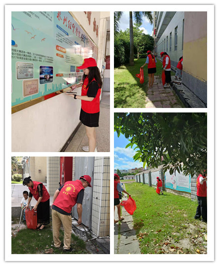 为扎实开展党史学习教育,积极响应泉州市共创文明城市、共享文明成果的号召,助力全国文明城市创建工作,激发党员志愿者参与文明城市创建的热情,展现会审系师生党员精神面貌,充分发挥党员干部的先锋模范作用,7月12日起,我系党总支每天安排师生党员和入党积极分子在校园内进行志愿服务。师生党员组成的志愿服务队身穿红马甲,头戴小红帽,手提各种劳动工具,穿梭在校园各角落,进行志愿服务工作。