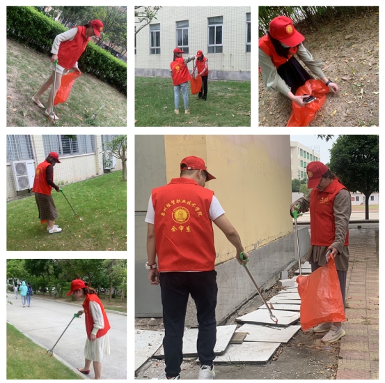 活动过程中,党员志愿者们佩戴党员徽章、身穿红马甲,充分发挥能吃苦、不怕脏、不怕累的精神,奋勇争先,相互协作,对西教学楼周边环境和道路上的烟蒂、废纸、塑料袋等垃圾进行清除,在大家的共同努力下,面貌焕然一新,营造出了一个干净、整洁的校园生活环境。
