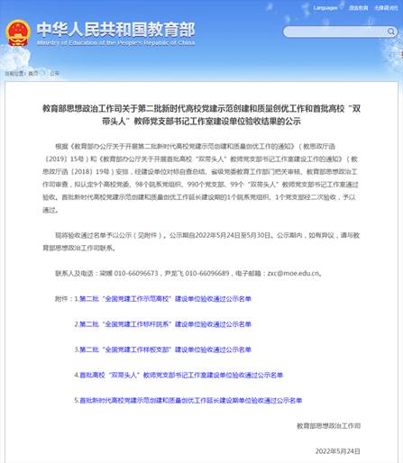 近日,教育部办公厅公布了第二批全国党建工作示范高校、标杆院系、样板支部培育创建单位验收结果,我院会审系第二党支部顺利通过第二批“全国党建工作样板支部”验收。