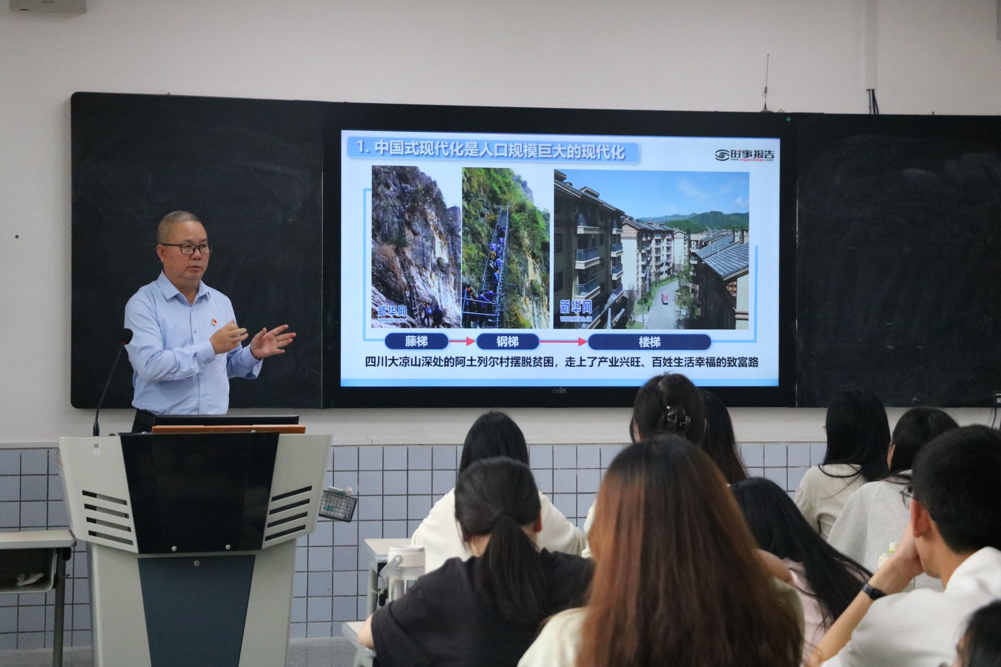 为深入学习贯彻习近平新时代中国特色社会主义思想,进一步学习领会党的二十大精神,4月19日下午,学院党委委员、副院长沈永希在西教202为我系师生讲授《读懂中国式现代化》专题思政课。