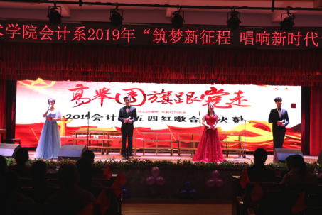 为弘扬“五四”爱国主义精神,继承共青团优良传统,陶冶学生爱国、爱党、爱校的情操,培养团结协作精神,丰富校园文化,营造健康高雅的文化环境,4月11日晚上6:30,会计系在学院大礼堂举办“筑梦新征程·唱响新时代”五四红歌合唱比赛。会计系主任沈永希老师、会审系党总支副书记陈贵洪老师、会计系副主任李英伟老师以及辅导员和班主任出席了本次活动,吴国胜、陈雅颖、李巧云、颜淑金、刘晞颖五位老师应邀担当了本次活动的评委。