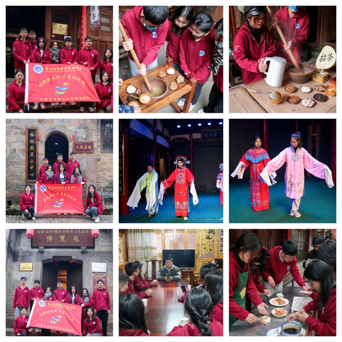 习近平总书记强调,文物和文化遗产承载着中华民族的基因与血脉,是不可再生、不可替代的中华优秀文明资源。为了更好地认识非遗,更好地传承好中华文化,引领广大青年坚定文化自信,传承非遗文化,会审系实践队向沙县小吃技艺传承人俞和传了解沙县小吃精细的制作工艺和深厚的文化底蕴,并实地体验扁肉的制作过程;跟大龙擂茶传承人李华一同参与擂茶制作,体验制作擂茶带来的乐趣,感受非遗美食文化的魅力;跟泰宁梅林戏传承人焦俊强老师走进国家级非物质文化遗产梅林戏展示中心,学习了解梅林戏的历史起源、文化特性和传承保护等,队员们还亲身穿着戏服,化上戏曲妆容,认真地学习戏剧表演的台步造型;走进泰宁县博物馆和泰宁非物质文化遗产博览苑,进一步深入了解泰宁县的发展历史和丰富的非遗资源,学习如何更好地传承和保护非物质文化遗产,体悟到千年不绝的文化传承,感受中华文化独有的博大精深,坚定文化自信。