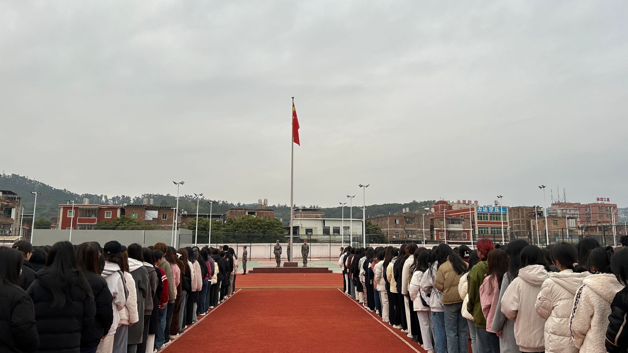 升旗仪式开始,国旗护卫队迈着坚定地步伐走向国旗台,在雄壮的国歌声中,鲜艳的五星红旗冉冉升起,在场的全体师生向国旗行注目礼、唱国歌,深怀对祖国无限的热爱和崇高的敬意。