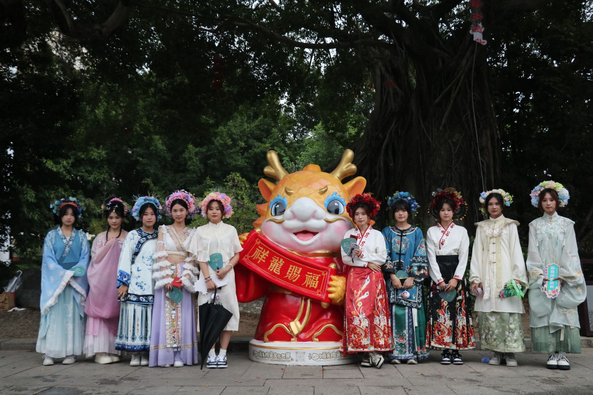 5月19日,2024年泉州市“穿越宋元古城·开启国潮之旅”启动仪式暨“泉竞龙舟·福传丝路”系列赛事发布活动在泉州影剧院广场举办。我系青年志愿者与众多志愿者一起,联袂在古城汉服巡游中呈现一道“头顶花园”簪花姑娘的靓丽风景线。