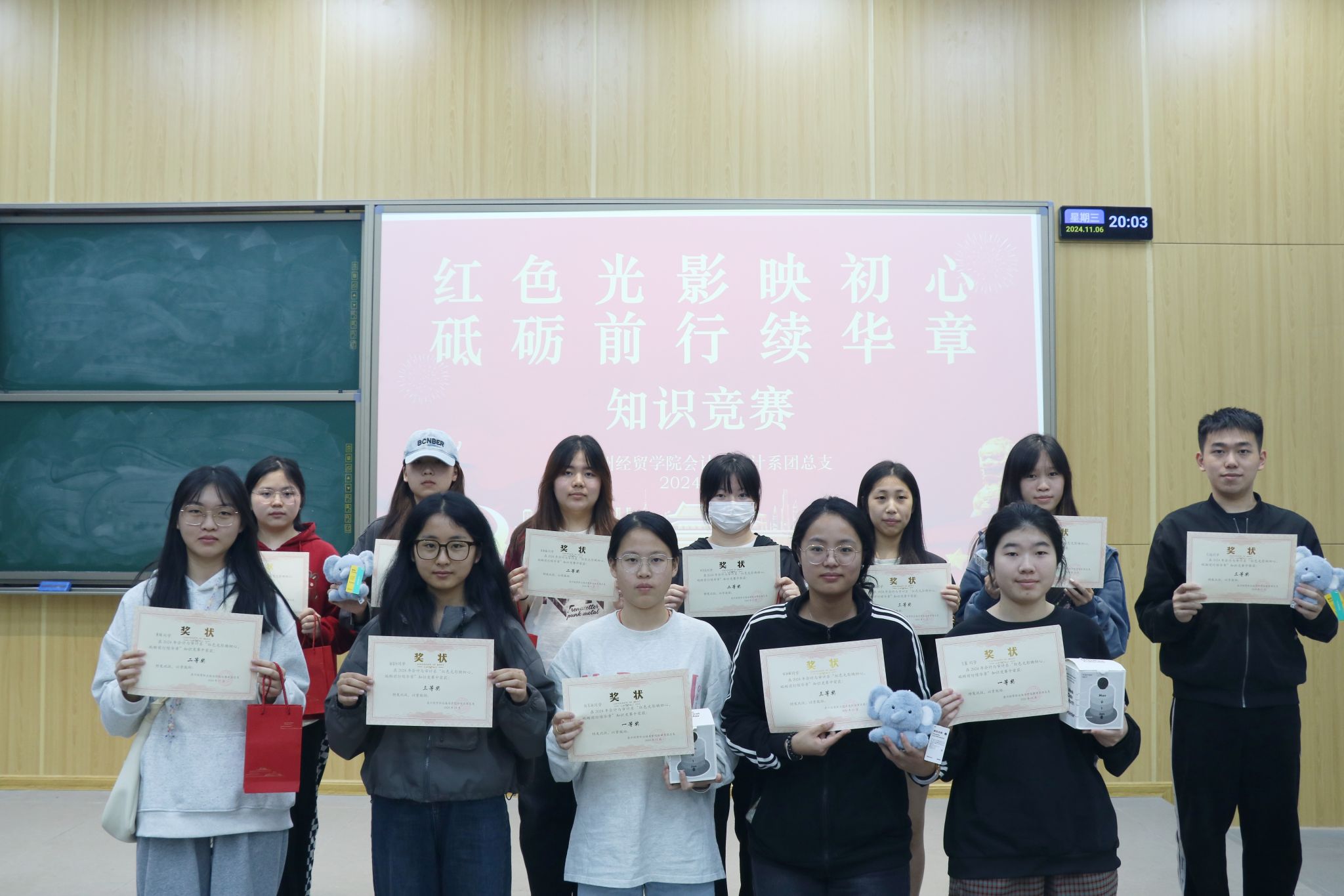 为深入学习贯彻党的二十大和二十届三中全会精神,激发同学们对红色经典文化的兴趣,加深对党和国家的发展历程及成就的了解,传承和弘扬红色文化,培养爱国主义情感,增强民族自豪感和历史责任感,我系团总支于2024年11月6日晚上在西教东梯组织开展了“红色光影映初心,砥砺前行续华章”红色经典文化知识竞赛活动。