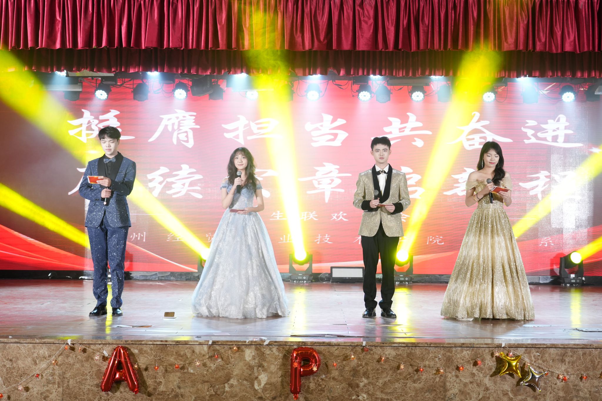 同聚经贸续新篇,同心筑梦启新程。2024年12月16日晚上,我系“挺膺担当共奋进,赓续宏章启新程”启航2025师生联欢晚会在学院大礼堂成功举办。我系党政领导、各系团总支负责人以及系全体师生齐聚一堂,共鉴艺术风华,共享新年喜乐。