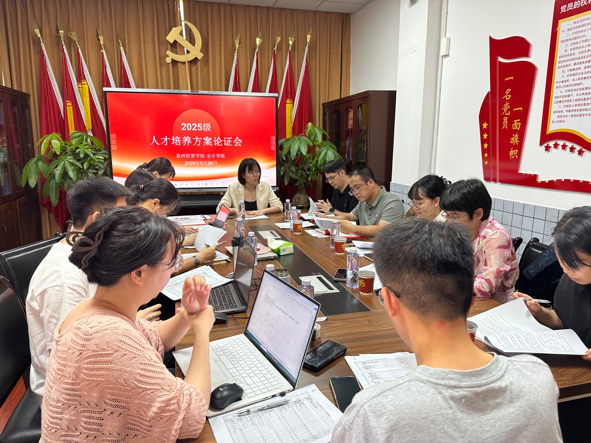 5月26日上午,我院在西教政治生活馆召开2025级人才培养方案论证会,本次论证会邀请黎明大学商学院朱毅芬教授、盼盼集团财务副总监王允钊、友臣集团审计总监蔡冠明、泉州水务集团财务共享中心副总经理涂小燕与5名学院专业带头人共同研讨课程优化与产教融合路径,旨在聚焦财会行业数智化转型趋势,校企共探人才培养新路径。