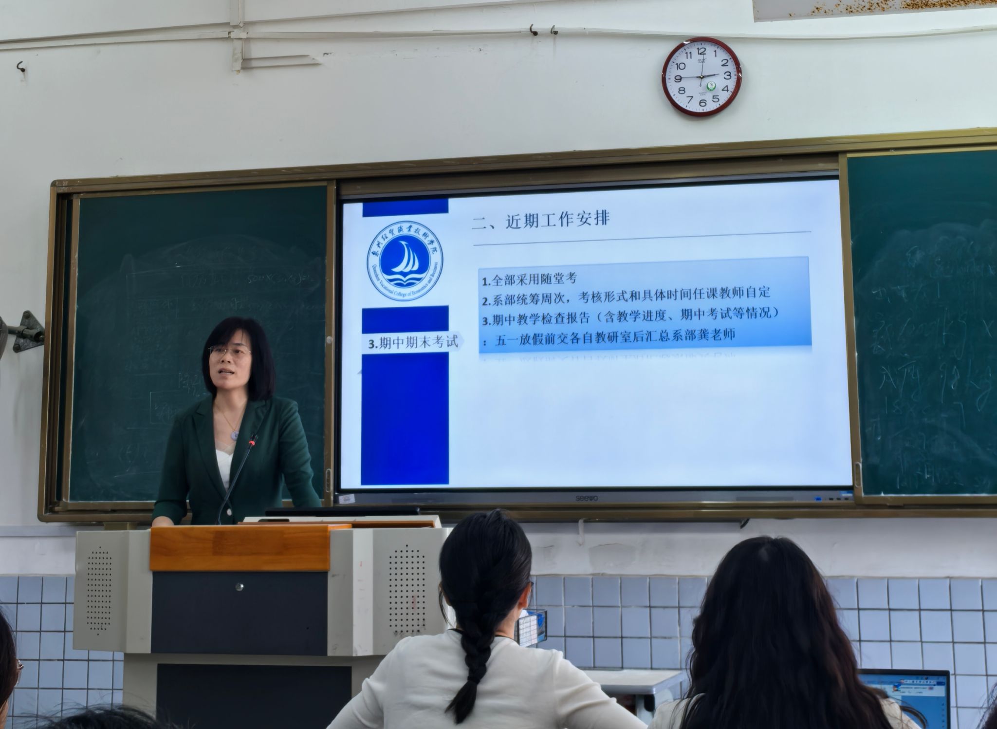 会上,吴秋红老师强调了期中教学检查的重要性,要求全体教职工以高度的责任感和使命感,积极投入到此次教学检查工作中去。安排部署了期中教学检查的重点工作和常规工作,并依据学院检查内容,要求任课教师及各教研室对每门课先要自检自查、理清工作思路和方向、强化责任意识,要将常规教学检查与期中教学检查紧密结合。