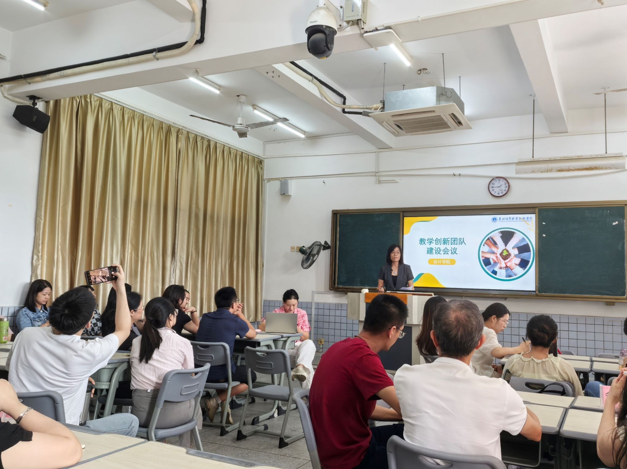 第二部分由会计学院副院长吴秋红老师关于教学创新团队建设提出几点要求。其中主要包括学院对于教学事故处理的严肃性、教学活动的部署与安排、学院专业发展提出新建议以及对青年教师的快速成长寄予更高要求。