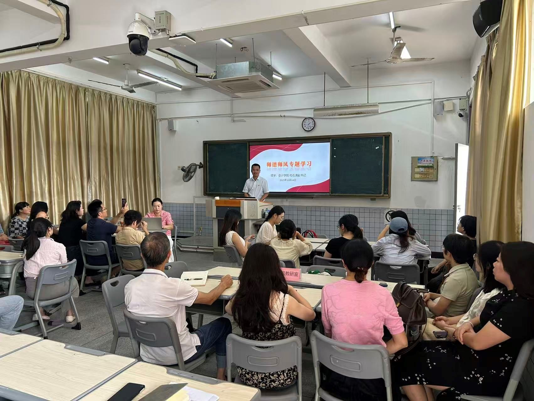 2025年10月14日下午,我院在西教303召开师德师风专题学习会议,会议由会计学院副院长吴秋红主持,全体教职工参加会议。