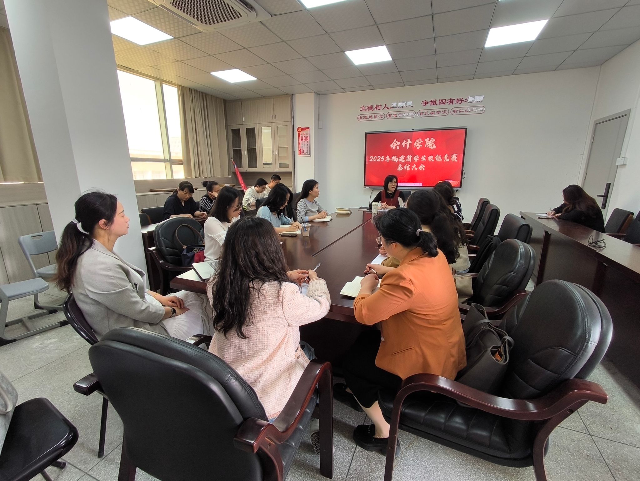 2025年福建省学生技能竞赛落下帷幕,我院勇创佳绩,我院共参加三个赛项,会计实务赛项荣获省赛一等奖第一名,勇夺八连冠;企业经营沙盘模拟比赛获得省赛一等奖;业财税融合大数据应用赛项取得省赛二等奖。我院紧锣密鼓于3月25日下午在西教5楼会议室召开2025年福建省学生技能竞赛总结大会。本次会上主要总结本年度竞赛成果,分享备赛经验,旨在通过内部交流优化赛项设计,提升教师指导能力,助力学生职业素养与技能水平双提升。