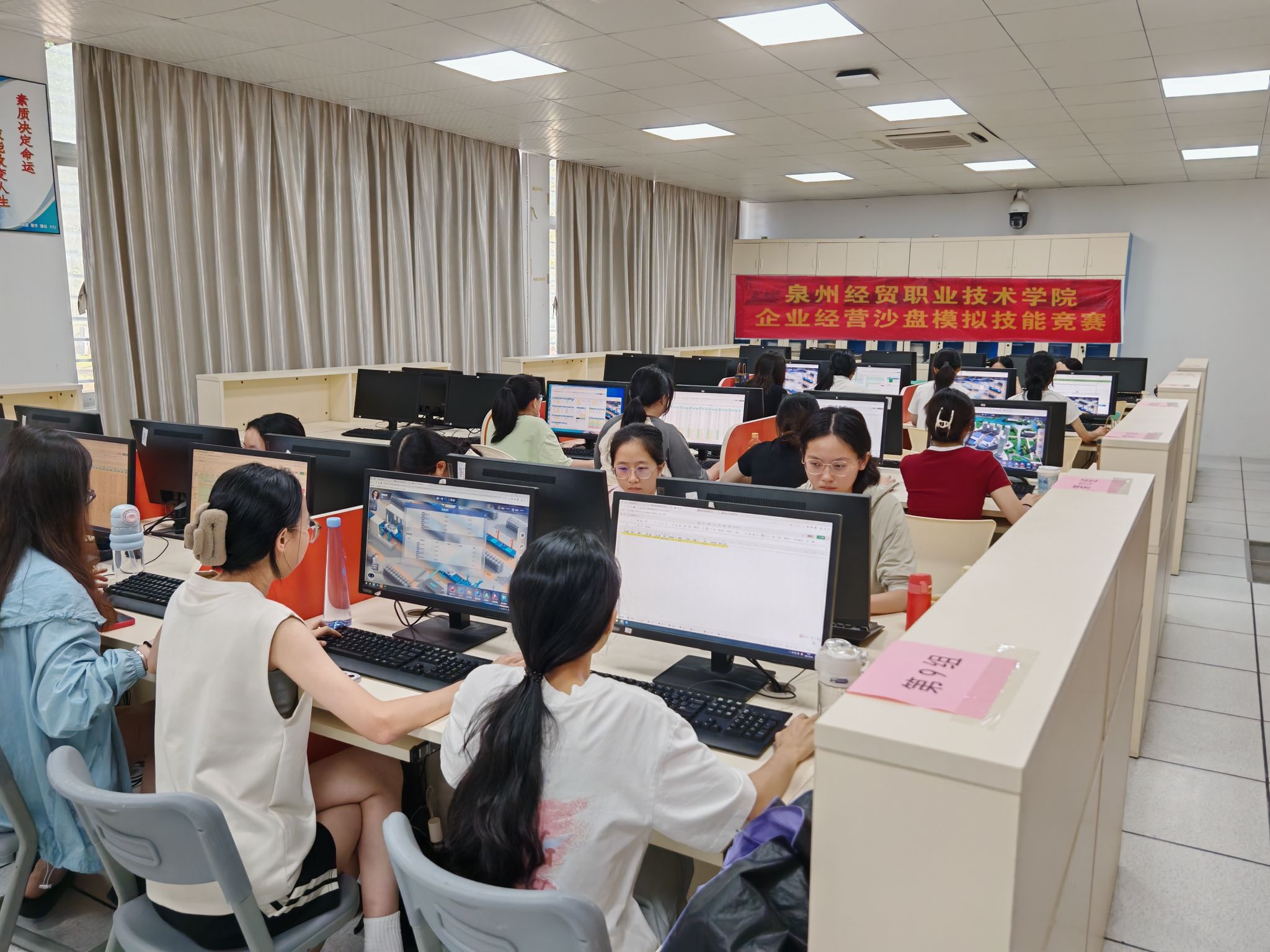 2025年6月26日下午,由泉州经贸职业技术学院团委与会计学院联合主办、企业沙盘协会承办的2025年企业经营沙盘模拟校赛在西101和西102举行。此次比赛吸引了全校16支队伍、共64名同学积极参与报名。