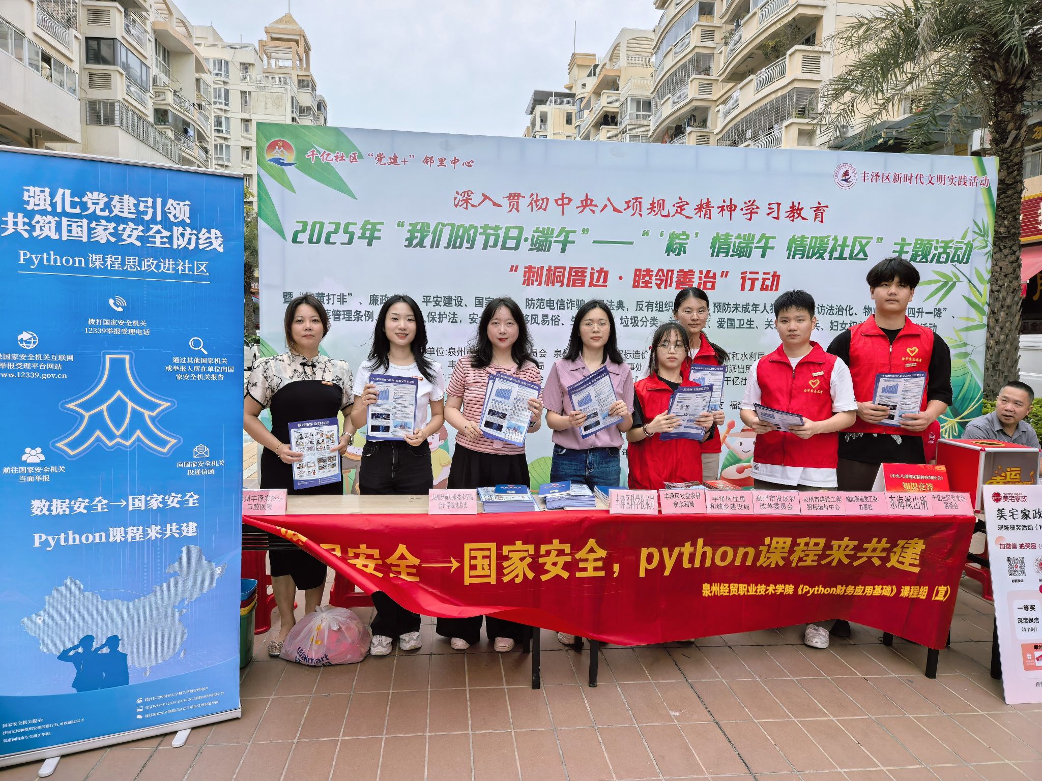 为推动Python财务应用基础课程思政建设,加强党建引领教学,同时切实增强社区居民的国家安全、数据安全意识,广泛凝聚维护国家安全的强大动力,坚定不移贯彻总体国家安全观,5月27日下午,我院Python财务应用基础课程组教师前往丰泽区临海街道千亿社区开展数据安全 国家安全 Python课程思政活动。