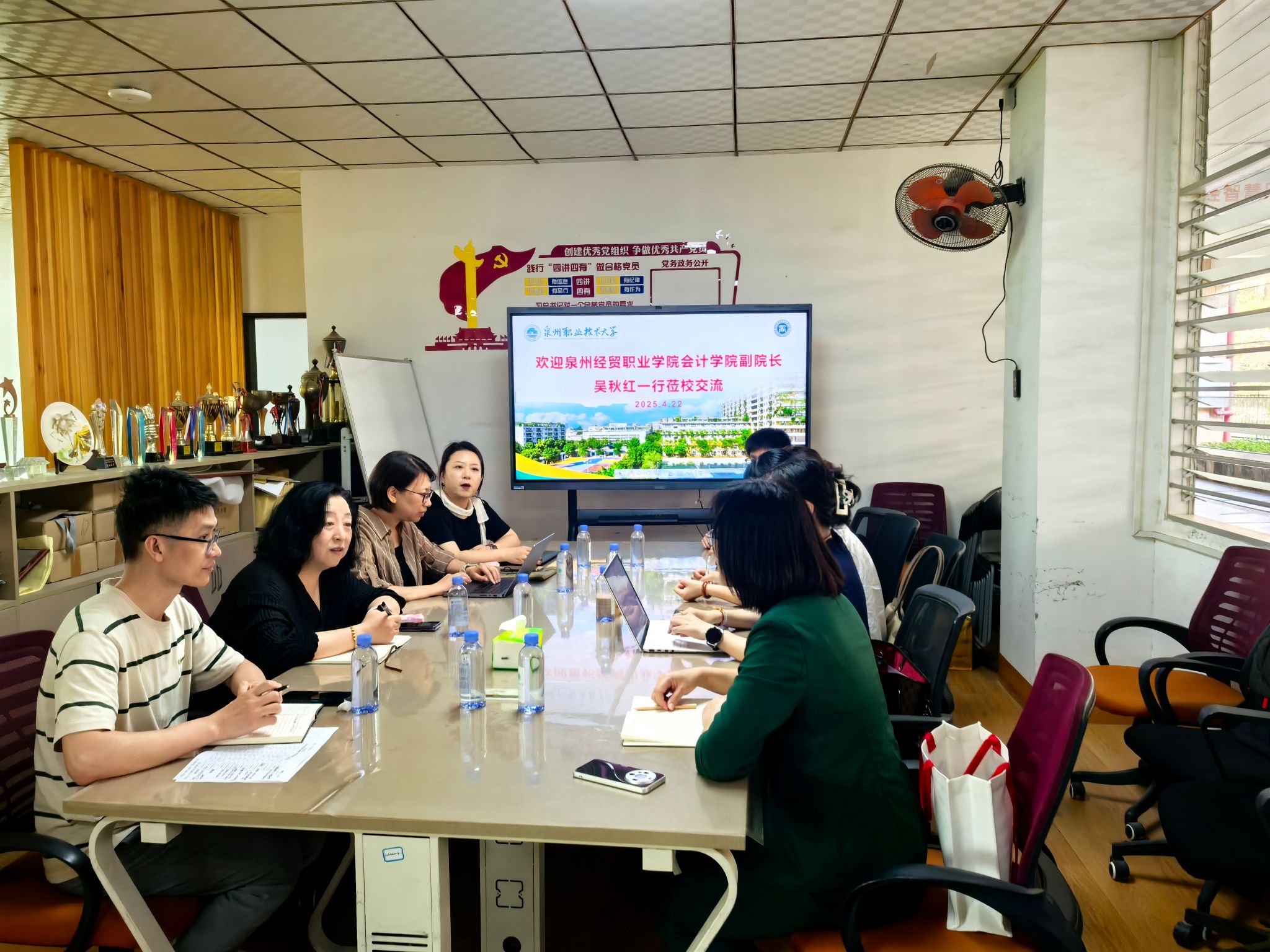 为深化职业教育改革,推动会计专业产教融合创新发展,2025年4月22日下午,会计学院副院长吴秋红带队赴泉州职业技术大学开展参观交流活动。泉州职业技术大学商学院院长姚宏伟、商学院院长助理郭学超等出席相关活动。