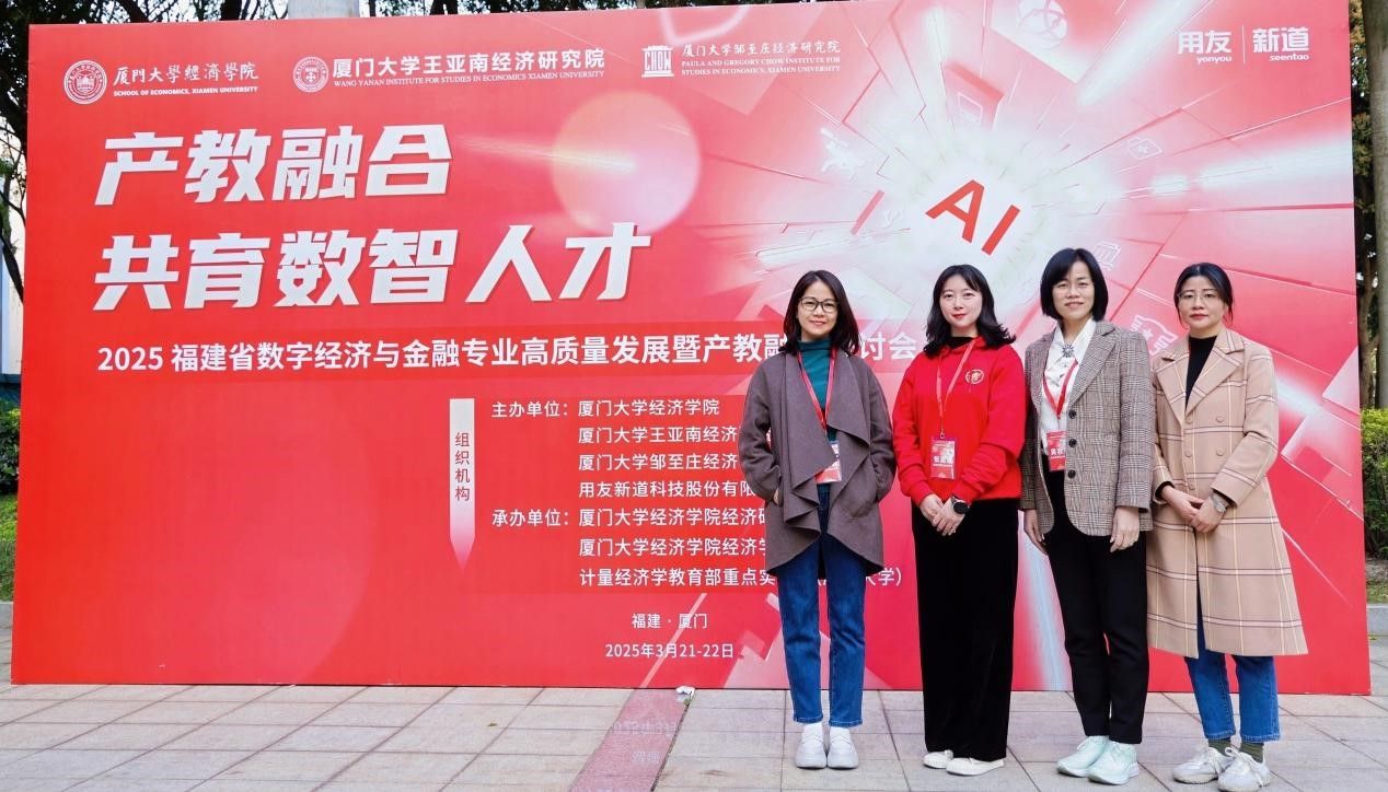 2025年3月21日,我院副院长吴秋红,携青年骨干教师张嘉欣、黄芳、李巧云老师前往厦门大学经济学院参加2025福建省数字经济与金融专业高质量发展暨产教融合研讨会,该会议由厦门大学经济学院、王亚南经济研究院、邹至庄经济研究院和用友新道科技股份有限公司主办。