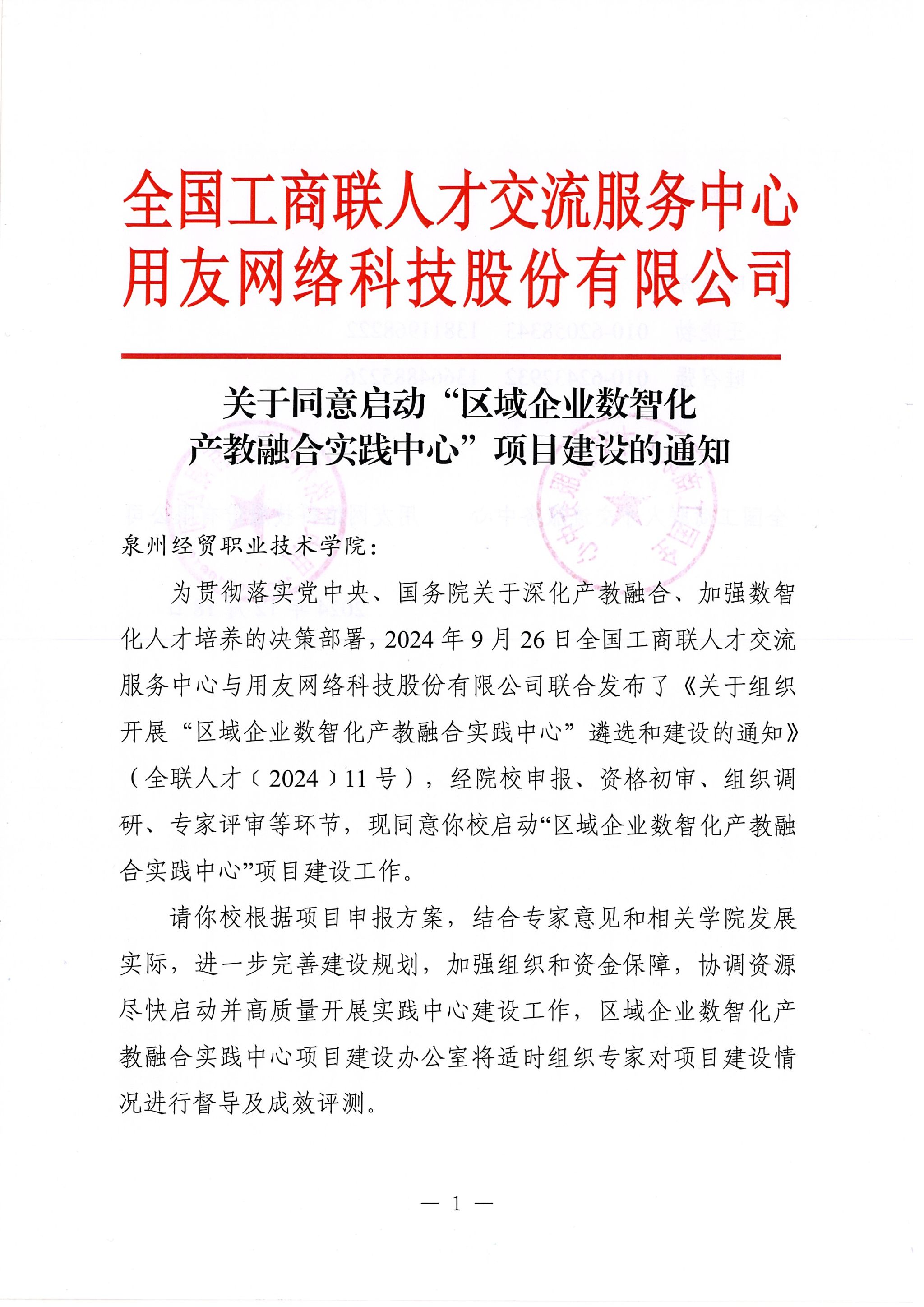 2024年12月18日,我院“区域企业数智化产教融合实践中心项目”获得全国工商联批准建设。