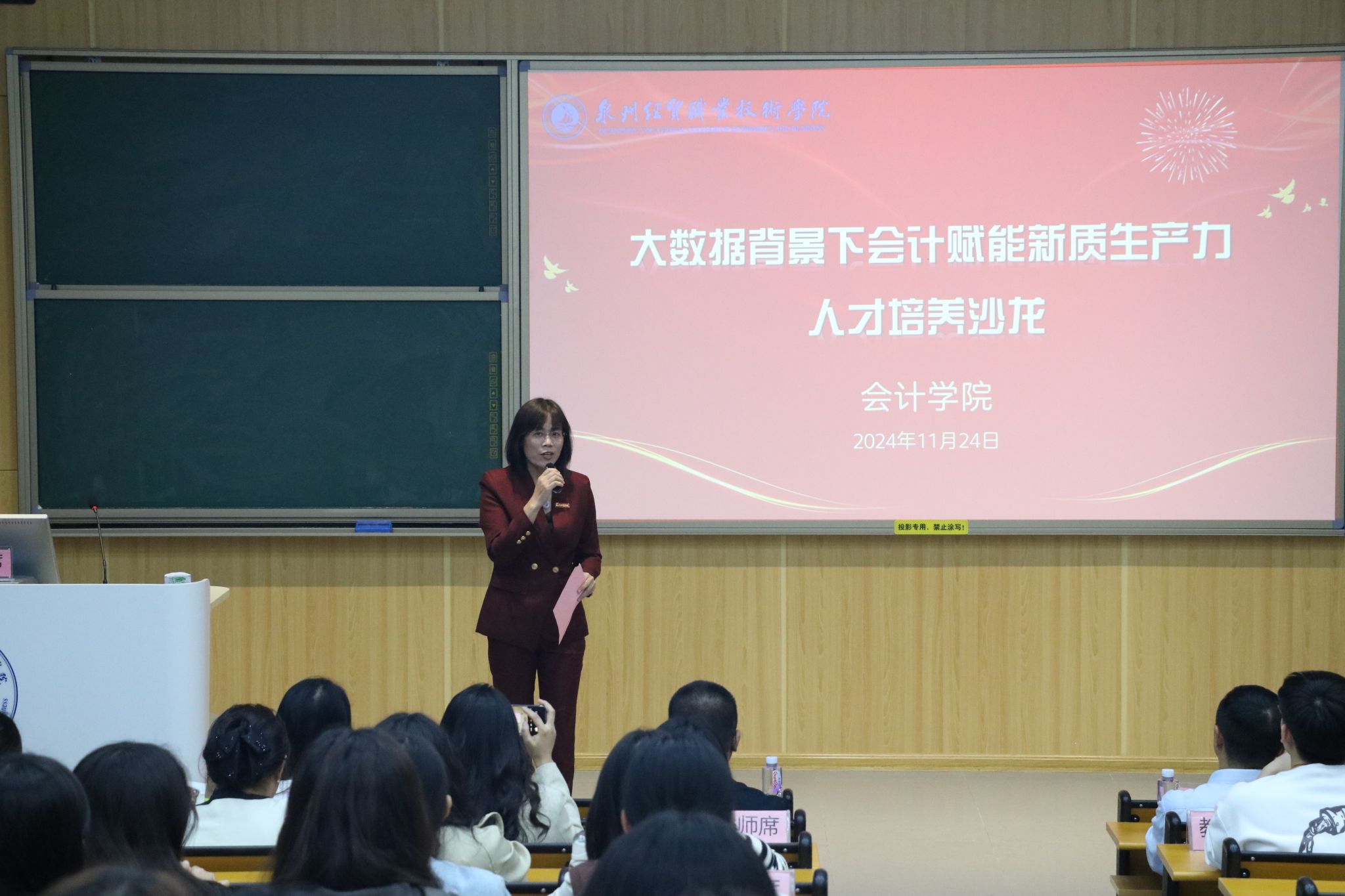 为深入剖析财务、审计等财经专业领域的前沿变革与人才适配需求,不断创新人才培养模式,全面提升财务管理人才培养质量,我系于2024年11月24日在西教学楼东梯成功举办“大数据背景下会计赋能新质生产力人才培养”论坛。本次论坛紧扣时代脉搏,围绕大数据背景下会计赋能新质生产力人才培养主题,吸引了众多师生及行业专家等各界人士踊跃参与,现场座无虚席,气氛热烈非凡。
