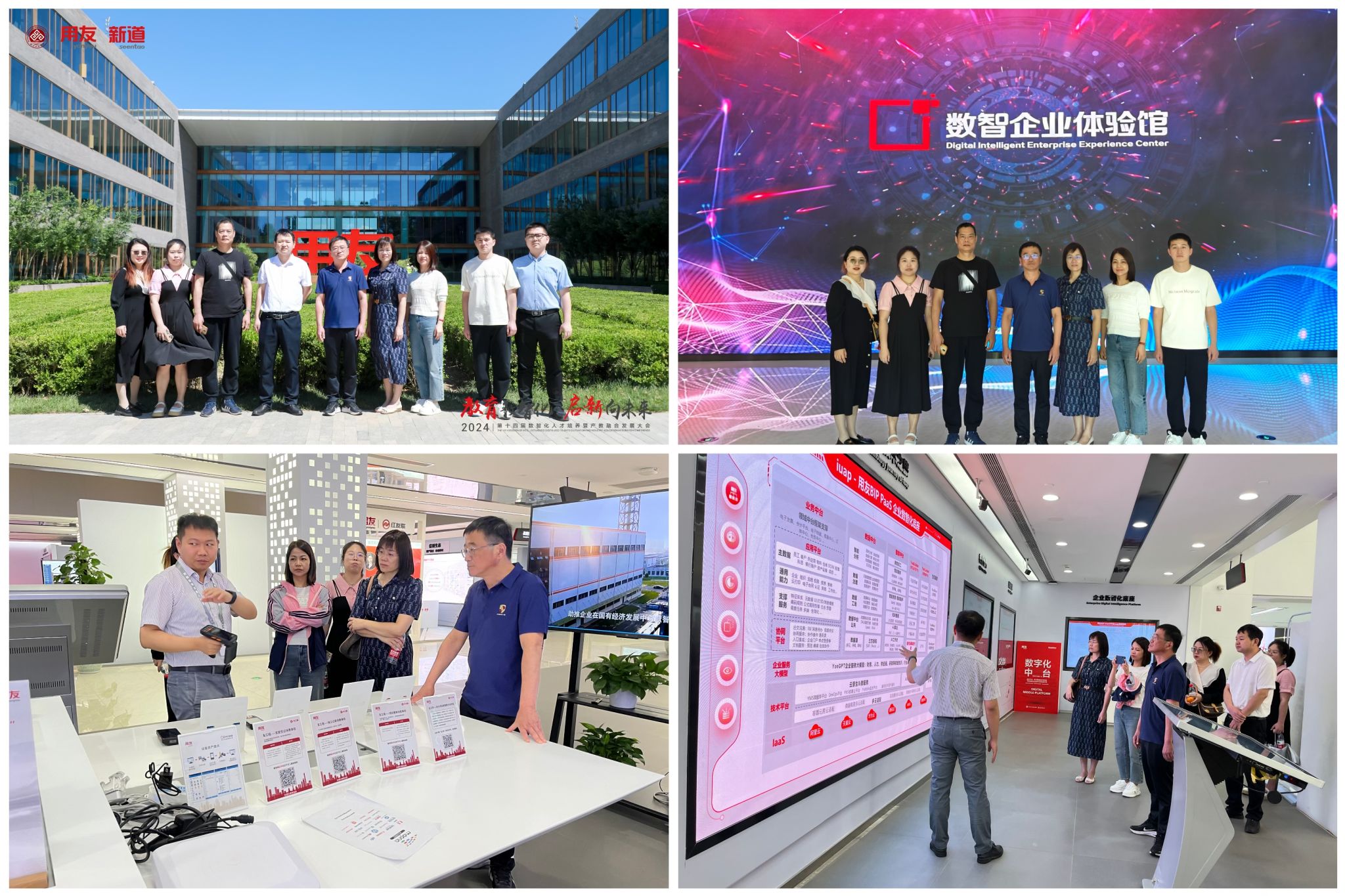 黄敬前一行还参观了新道科技股份有限公司北京总部和用友数智企业体验馆。数智企业体验馆是中国第一家综合型、融合化、生态式的数字企业体验平台,全方位展示了数字企业在营销、采购、生产、财务、人力、协同等核心业务方面的应用场景,并结合行业数字化解决方案,解读了企业数智化的运营和管理模式。